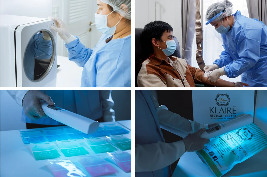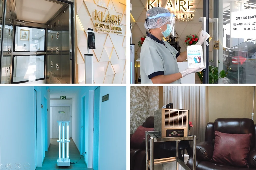 • All exam rooms and treatment rooms are disinfected by a UVC machine and Ozone generator immediately after used for each client.